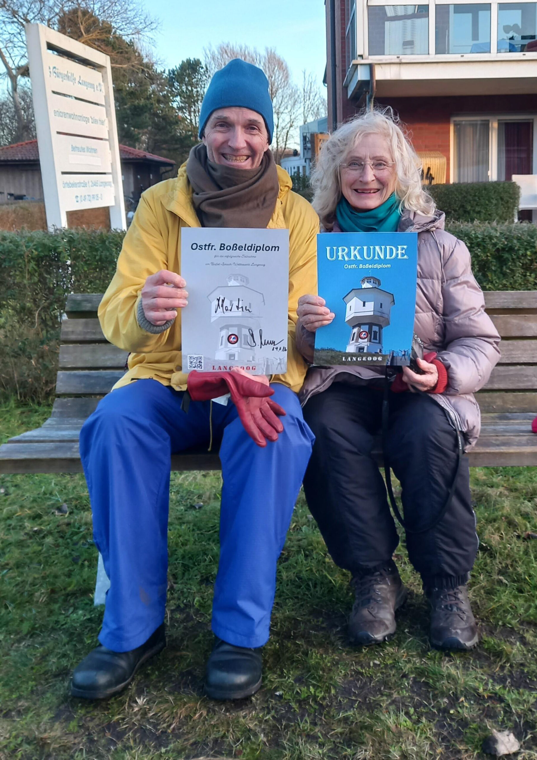 Zwei Münchner auf Langeoog, Rita und Martin, wagten als absolute Boßelneulinge den Wurf ins Ungewisse.